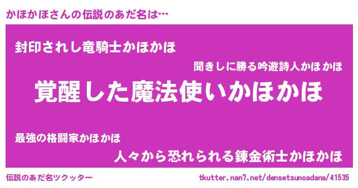 | ヒーロー風カッコイイあだ名 | 『炎刃騎士カホ』『スーパーカホカホ』 |