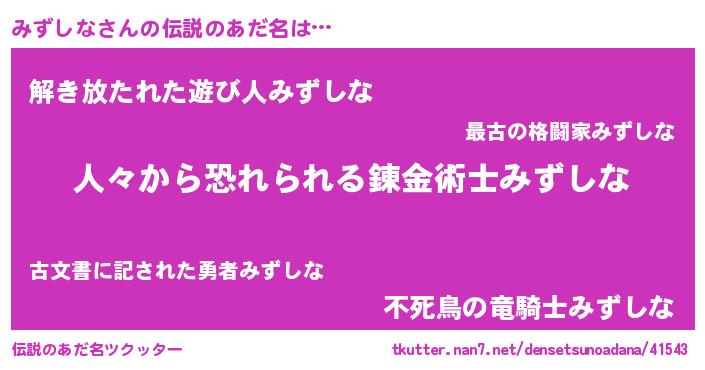 | 意味不明あだ名 | 『住所不定無職みずしな(89歳)』 |