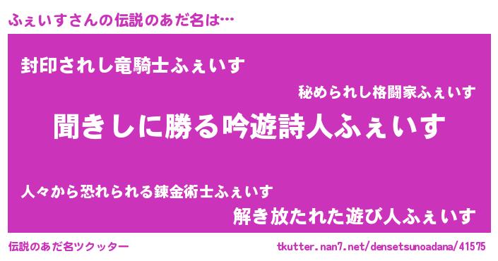 | ヘコむあだ名 | 『ふぇいす(小並感)』『ふぇもー』 |