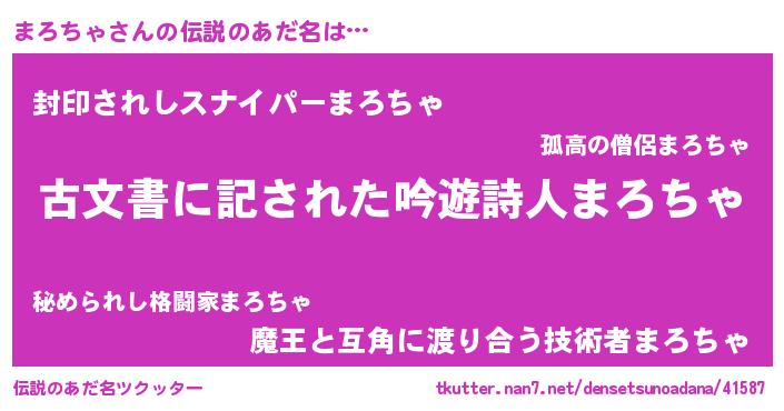 | 男性向けラノベタイトル風あだ名 | 『まろちゃに滅ぼされるだけの簡単なお仕事です』 |
