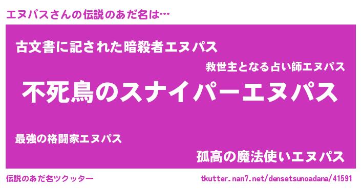 | 意味不明あだ名 | 『住所不定無職エヌパス(74歳)』 |