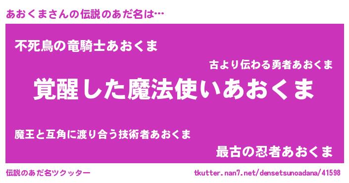 | 意味不明あだ名 | 『とにかく怪しいあおくま』 |