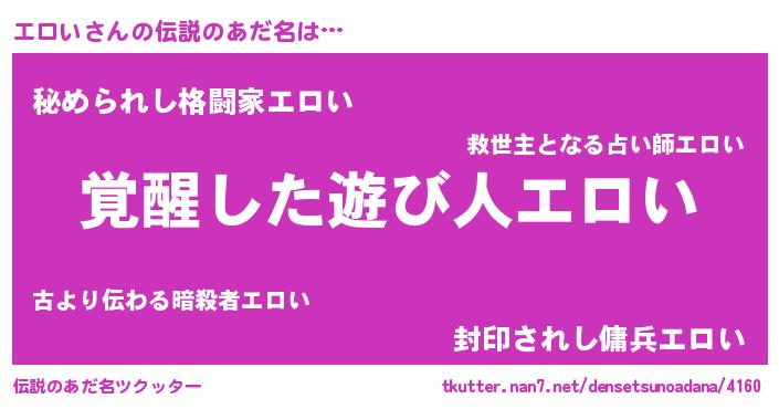 | 意味不明あだ名 | 『住所不定無職エロい(89歳)』『自称エロい』 |