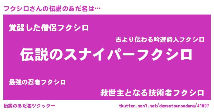 | 意味不明あだ名 | 『住所不定無職フクシロ(84歳)』 |
