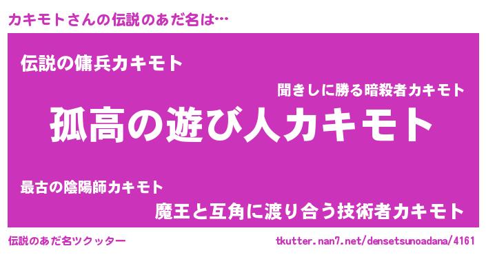 | ヒーロー風カッコイイあだ名 | 『ウルトラ戦士カキモト』『魔戒騎士カキ』 |