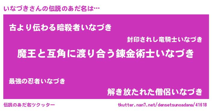 | 男性向けラノベタイトル風あだ名 | 『ノーゲーム・ノーイナヅキ』 |