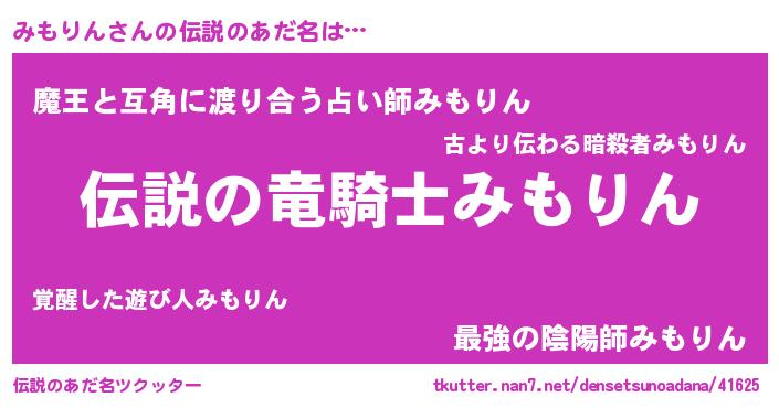 | ヒーロー風カッコイイあだ名 | 『スーパーミモリン』『愛の使者みもりん』 |