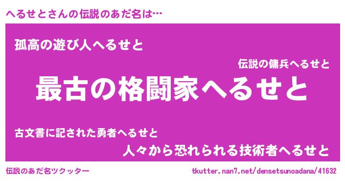 | 意味不明あだ名 | 『住所不定無職へるせと(6歳)』 |