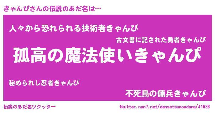 | 意味不明あだ名 | 『自称きゃんぴ』『もやし科きゃんぴ属』 |