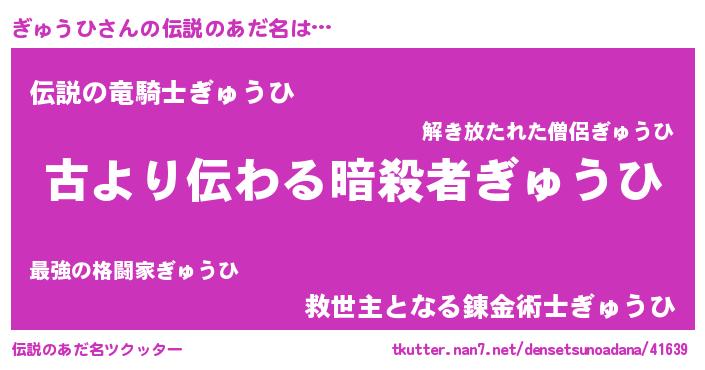 | 意味不明あだ名 | 『なめこ科ぎゅうひ属』『自称ぎゅうひ』 |