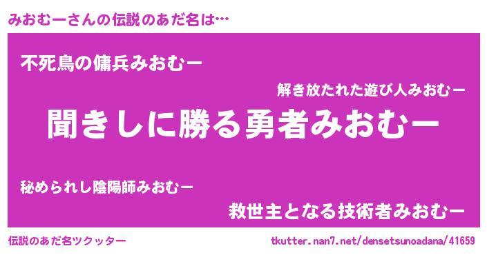 | 女子向けラノベタイトル風あだ名 | 『みおむーなんてお断りですっ。』 |