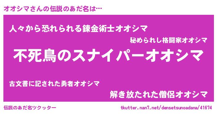 | ヒーロー風カッコイイあだ名 | 『サイバー戦士オオシマ』『仮面オオダー』 |