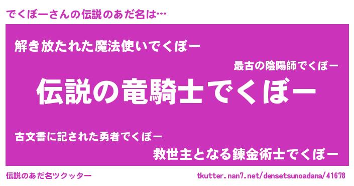 | 胡散臭い通販商品みたいなあだ名 | 『ガンによく効く高麗人参…その名も「でくぼー」』 |