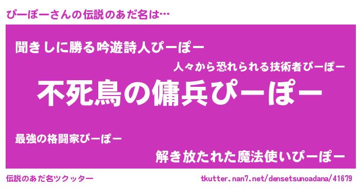 | 男性向けラノベタイトル風あだ名 | 『転生したらぴーぽーだった件』 |