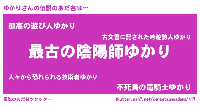 | ファンタジー風あだ名 | 『カークユカラー』『エターナルユカリー』 |