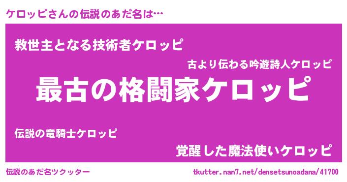 | ヒーロー風カッコイイあだ名 | 『ウルトラケロッピマン』『仮面ケロダー』 |