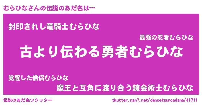 | 意味不明あだ名 | 『永久保存むらひな』『自称むらひな』 |