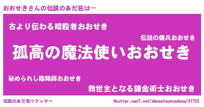 女子向けラノベタイトル風あだ名 | 『おおせきは平凡を望む』 |