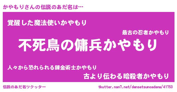 | 胡散臭い通販商品みたいなあだ名 | 『モテモテ間違いなし水晶球…その名も「かやもり」』 |