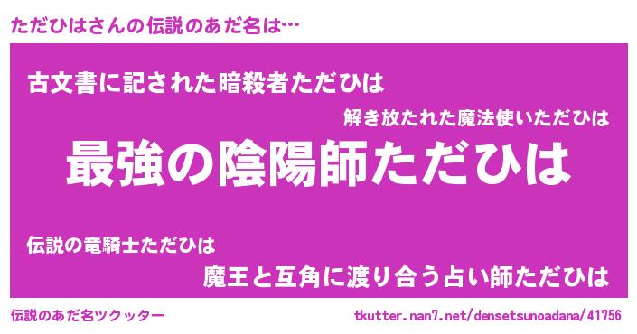 | 意味不明あだ名 | 『住所不定無職ただひは(86歳)』 |