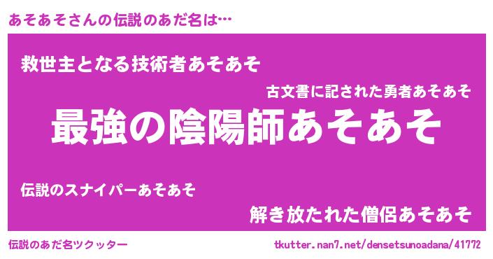 | ヒーロー風カッコイイあだ名 | 『仮面アソダー』『ウルトラあそあそマン』 |