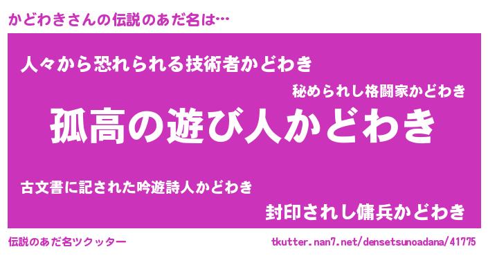 | ヒーロー風カッコイイあだ名 | 『ウルトラ戦士カドワキ』『暗黒騎士カド』 |