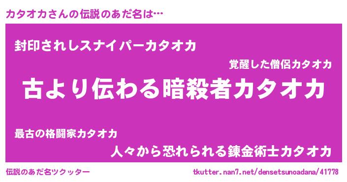 | 女子向けラノベタイトル風あだ名 | 『シンデレラカタオカ家の靴箱館』 |