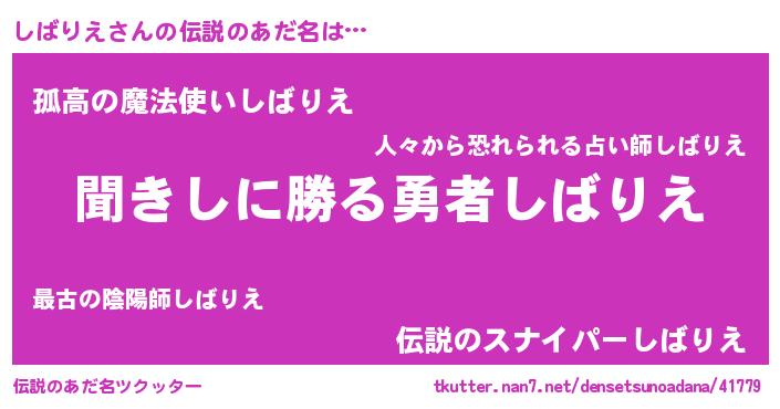 | 意味不明あだ名 | 『自称しばりえ』『永久保存しばりえ』 |