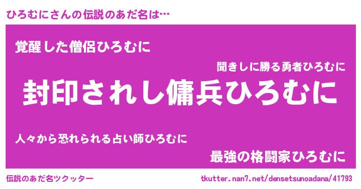 | 胡散臭い通販商品みたいなあだ名 | 『億万長者になれる水晶球…その名も「ひろむに」』 |