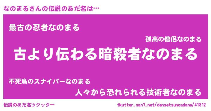 | 意味不明あだ名 | 『自称なのまる』『永久保存なのまる』 |