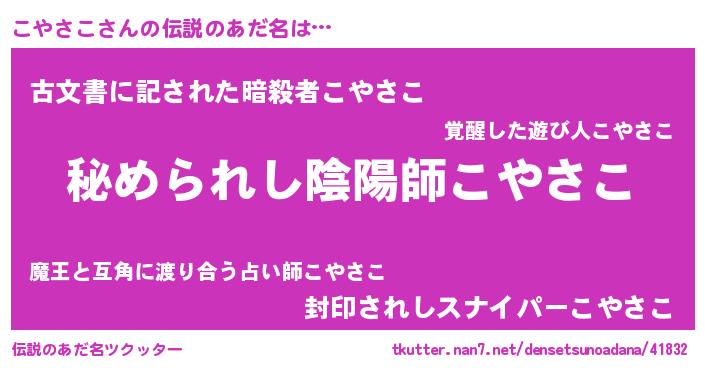 | 女子向けラノベタイトル風あだ名 | 『こやさこなんてお断りですっ。』 |
