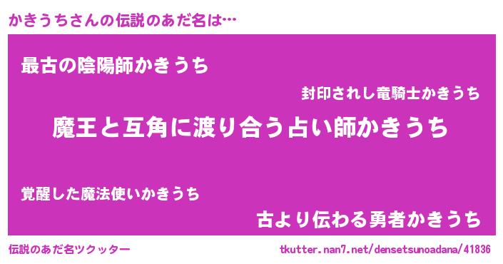 | 男性向けラノベタイトル風あだ名 | 『Re:かきうちから始める異世界生活』 |