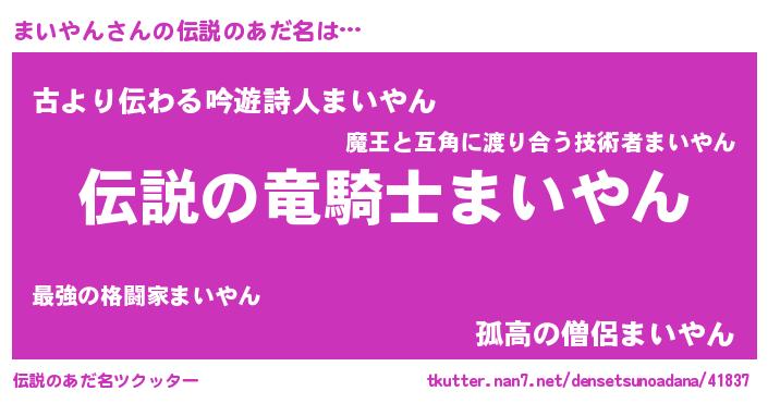 | 男性向けラノベタイトル風あだ名 | 『まいやんの憂鬱』『緋弾のマイヤン』 |