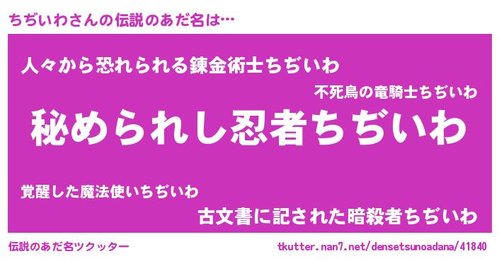 | ファンタジー風あだ名 | 『ゼチヂトゥ』『エターナルチヂイワー』 |