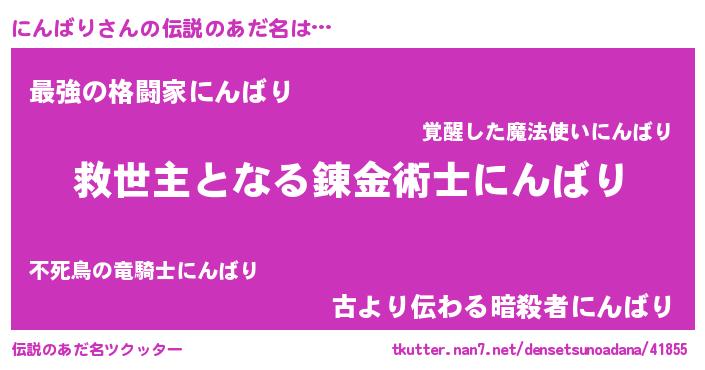 | ヒーロー風カッコイイあだ名 | 『天空の使者にんばり』『ネオニンバリ』 |