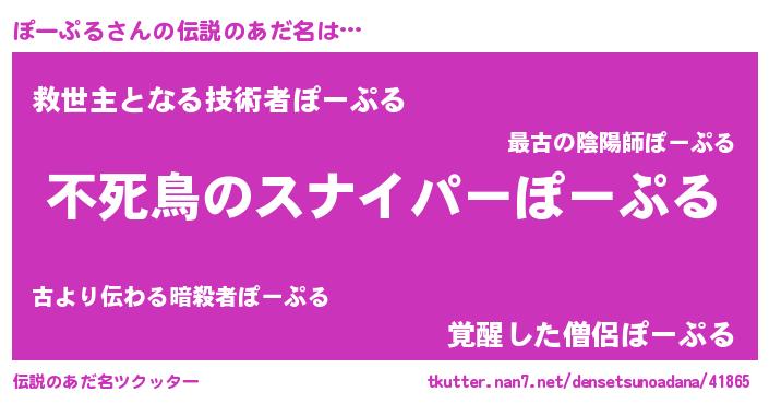 | 意味不明あだ名 | 『ペロリンぽーぷる』『自称ぽーぷる』 |