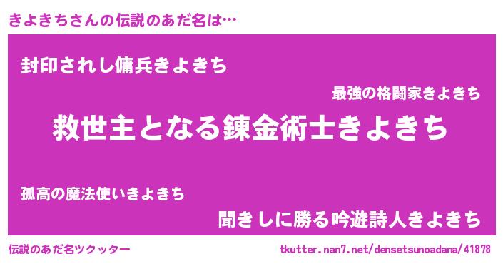 | 女子向けラノベタイトル風あだ名 | 『死神きよきちの再婚』 |