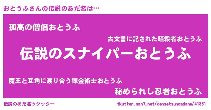 | 胡散臭い通販商品みたいなあだ名 | 『必ず成功する霊験あらたかなお札…その名も「おとうふ」』 |