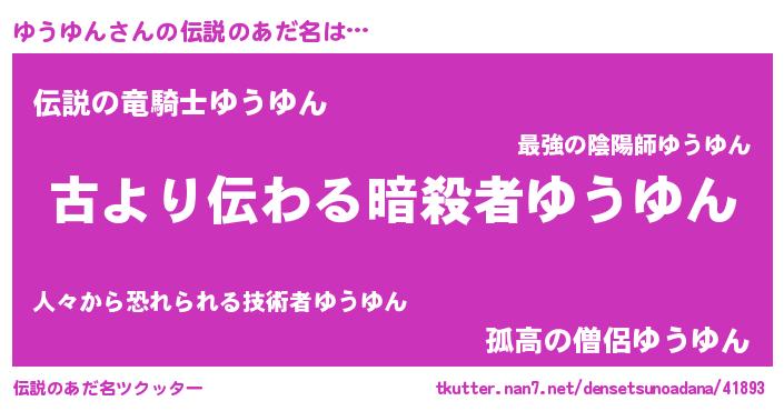 | ファンタジー風あだ名 | 『ユウディッシュ』『ユウフェル』 |