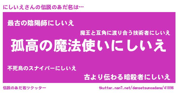 | 意味不明あだ名 | 『住所不定無職にしいえ(8歳)』 |