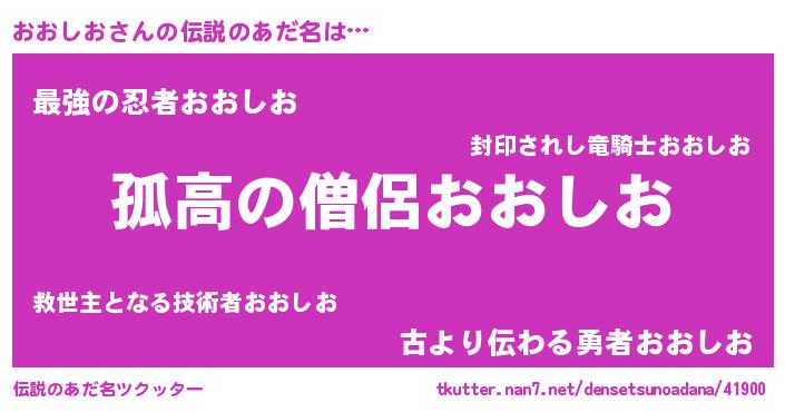 | 意味不明あだ名 | 『とにかく怪しいおおしお』 |
