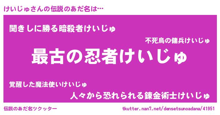 | ヒーロー風カッコイイあだ名 | 『ウルトラけいじゅマン』『仮面ケイダー』 |