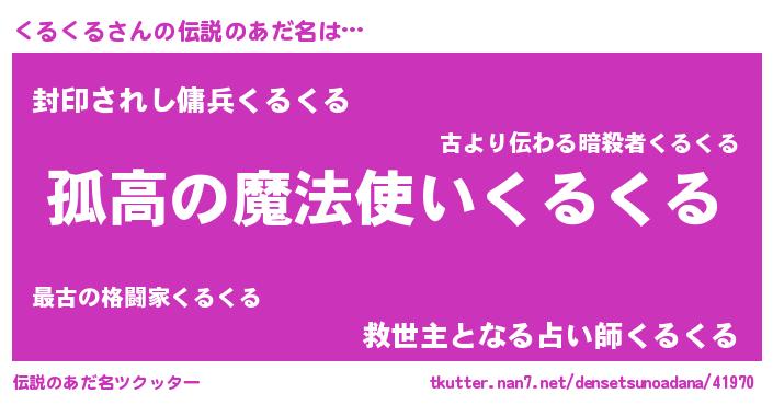 | ヒーロー風カッコイイあだ名 | 『超時空戦士クルクル』『天弓騎士クル』 |