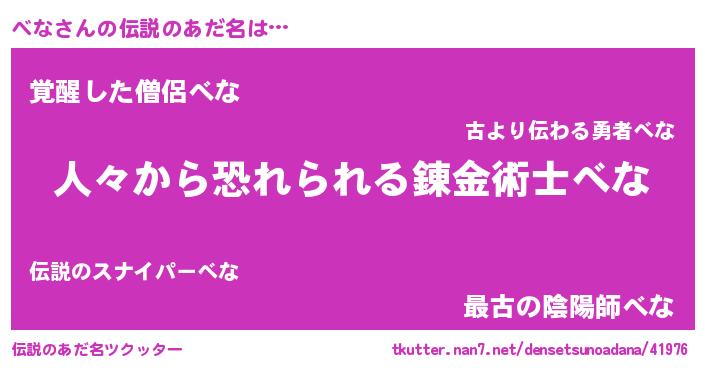 | 意味不明あだ名 | 『住所不定無職べな(79歳)』『永久保存べな』 |