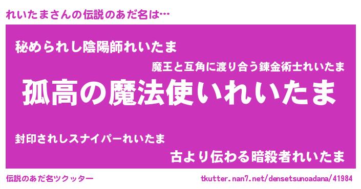 | ヒーロー風カッコイイあだ名 | 『暗黒騎士レイ』『ウルトラれいたまマン』 |