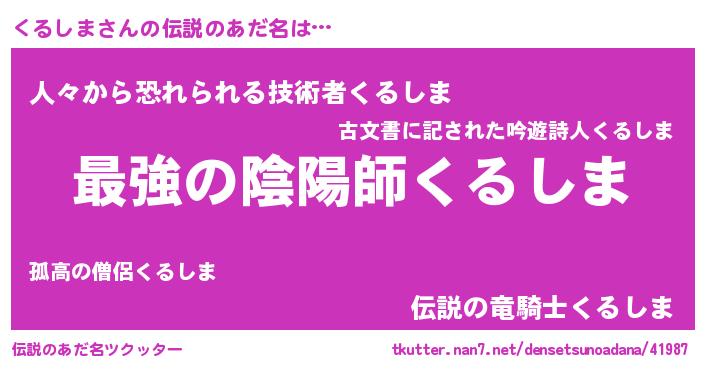 | 意味不明あだ名 | 『くるしまフォーエバー』『自称くるしま』 |