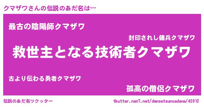| 意味不明あだ名 | 『眠気覚ましガムクマザワ味』 |