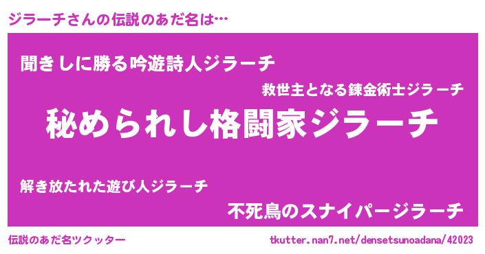 | ファンタジー風あだ名 | 『エターナルジラーチー』『ゼジラトゥ』 |