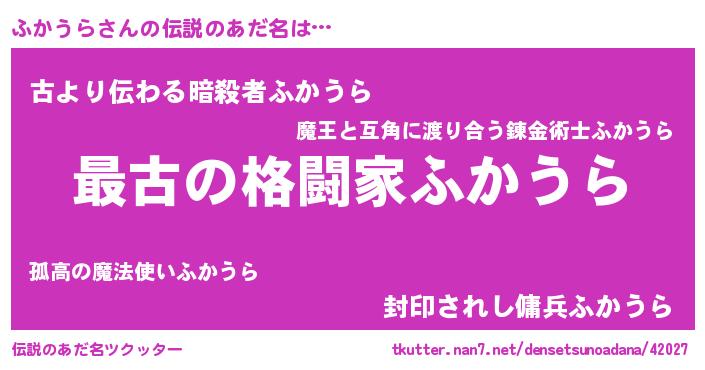 | 意味不明あだ名 | 『もやし科ふかうら属』『自称ふかうら』 |