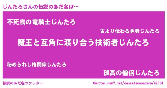 | ヒーロー風カッコイイあだ名 | 『慈愛の使者じんたろ』『仮面ジンダー』 |